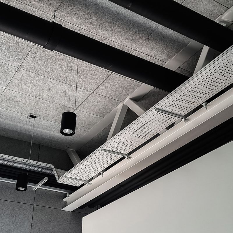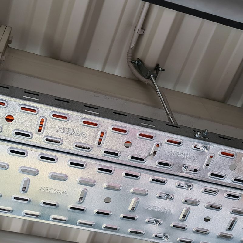 SIP, Europe’s leading manufacturer of agricultural machinery, has installed over 1,500 metres of Hermi cable trays in its state-of-the-art SIP Center – an advanced business, exhibition, and training facility located in Šempeter, Slovenia. Within this space, the cable trays serve as a particularly ingenious element of the building’s technical infrastructure. The white Hermi cable trays are strategically integrated into the centre’s bright, modern design, ensuring the efficient and safe distribution of electrical and other installation cables. Their colour blends seamlessly with the architecture, contributing to a clean and minimalist aesthetic. In addition to the cable trays, the Hermi lightning protection system safeguards both the business and production areas.