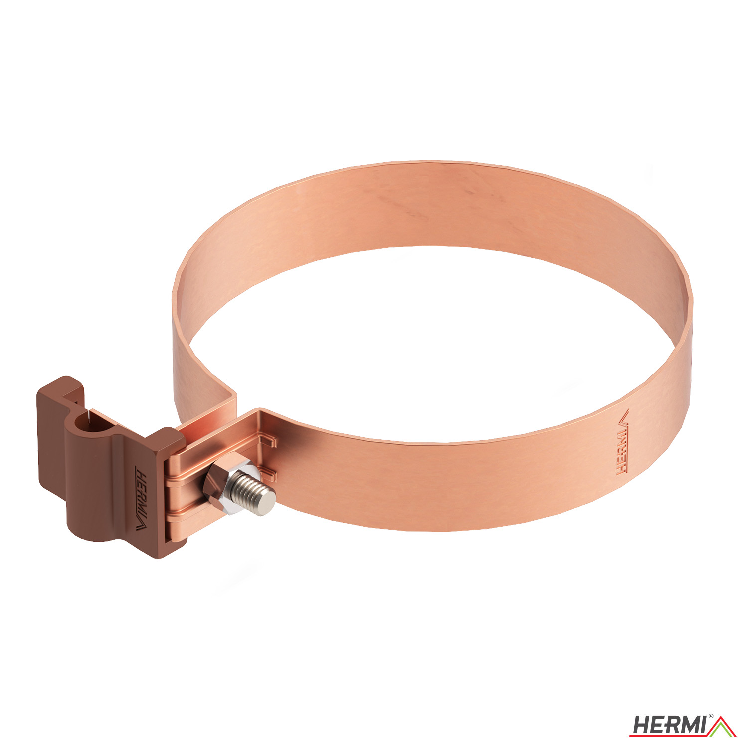 KON12 A cevna objemka | KON12 A cevna objemka, narejena iz enega dela, namenjena pritrjevanju vodnikov okroglega preseka na odtočne cevi različnih dimenzij; pritrjevanje vodnika na cevno objemko brez vijačenja (N – nylon držalo). | Vodnik: Ø = 8 mm